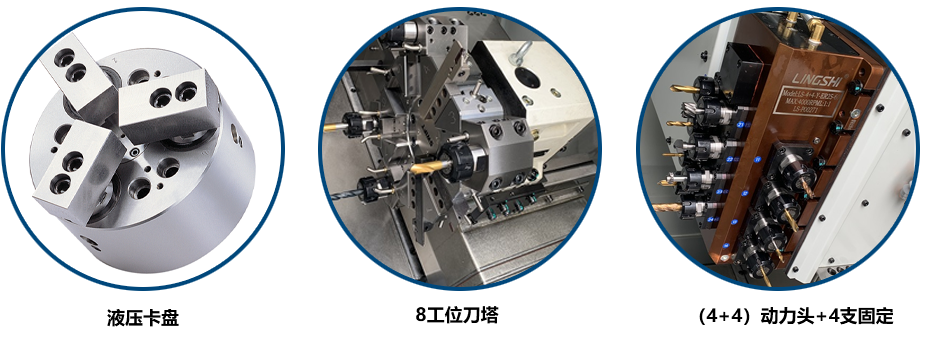 ●刀塔采用伺服马达驱动,可就近换刀,换刀速度快。刀塔锁紧为油压锁定,锁紧力強,刀塔稳定性高,实现刀塔高刚性及高精度特点。